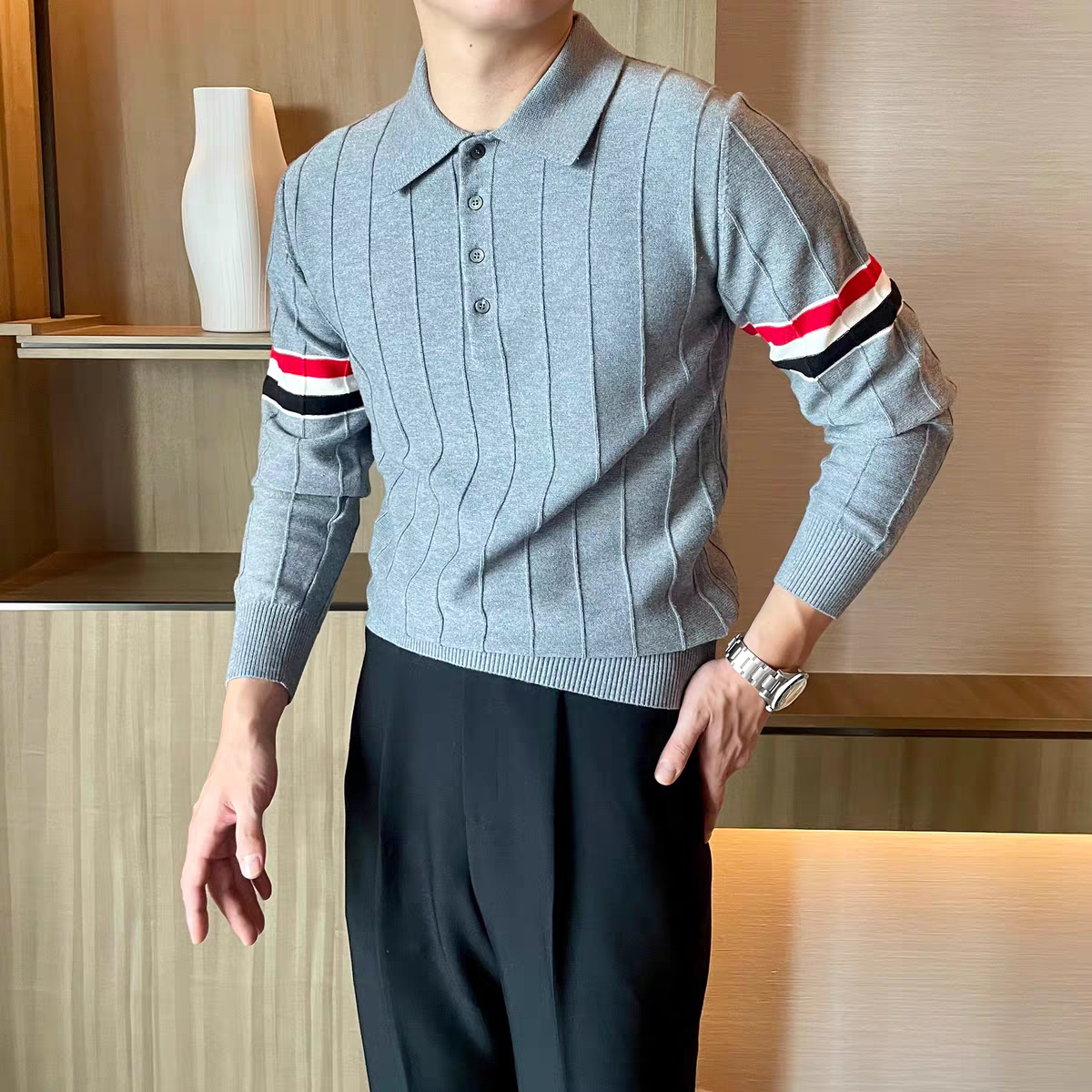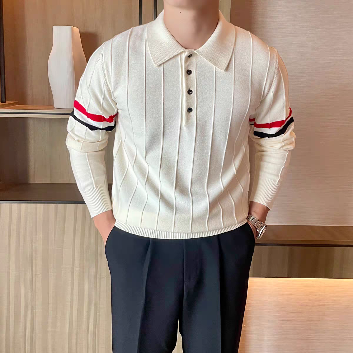 Ribbed polo collar and cuffs for a sharp, structured finish
